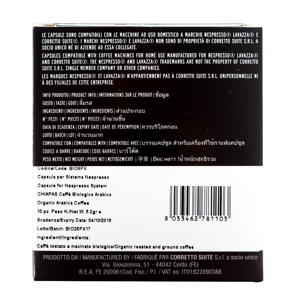 Prodotto biologico e certificato, compatibile con il sistema più diffuso di capsule