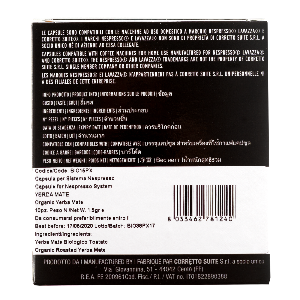 Prodotto biologico e certificato, compatibile con il sistema più diffuso di capsule