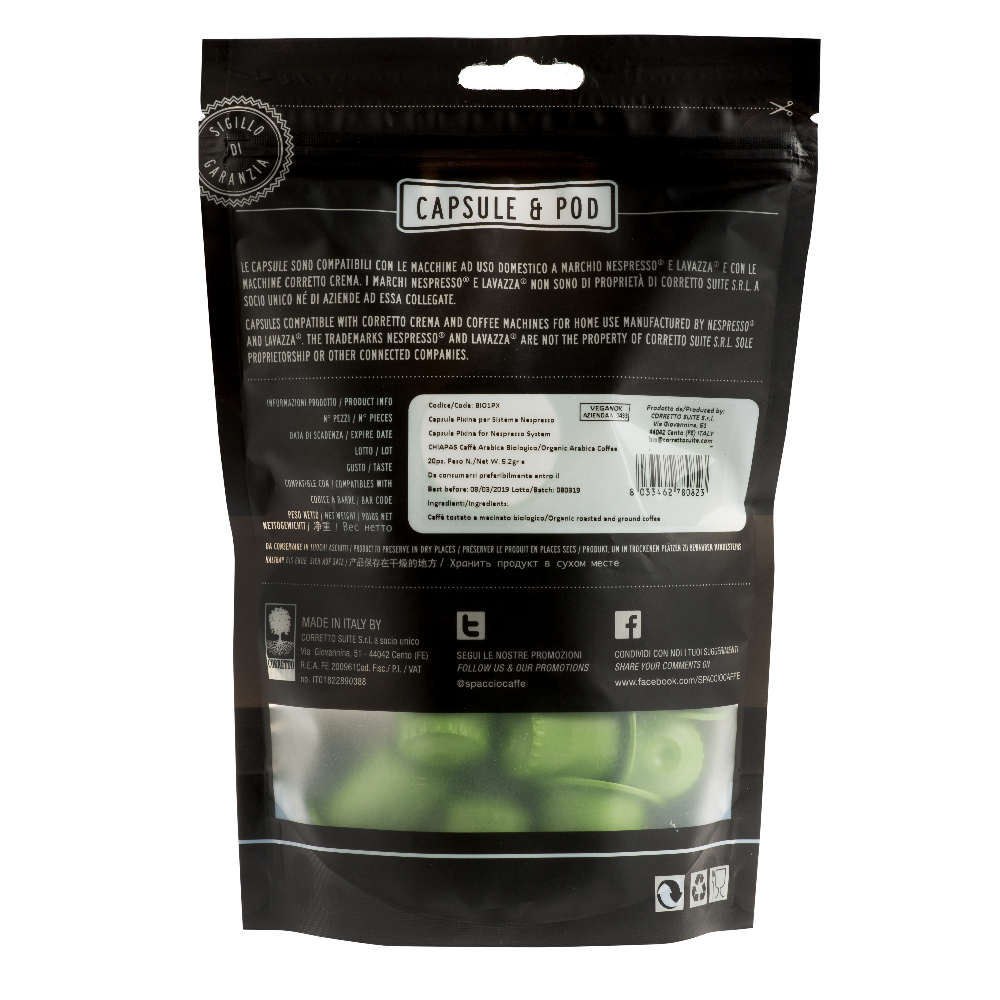 Prodotto biologico e certificato, compatibile con il sistema più diffuso di capsule