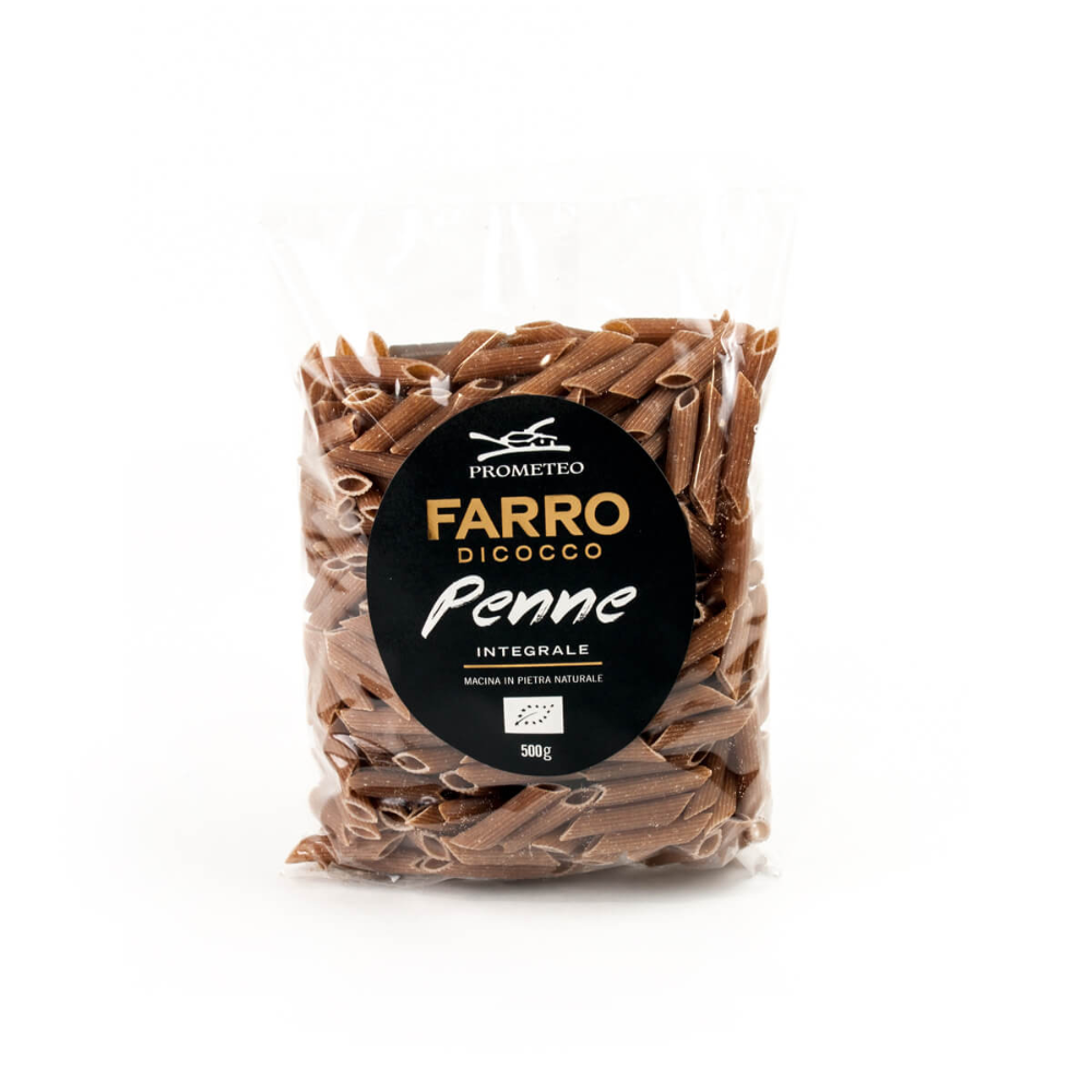 Le penne sono il formato di pasta più caratteristico della cucina italiana. Piccoli cilindri di gusto che si sposano perfettamente con qualsiasi tipo di condimento grazie alla superficie rigata e porosa. Le Penne integrali portano nel piatto la ricchezza di fibre garantita dalla macina a pietra naturale e l’alta digeribilità del farro per regalare a ogni piatto gusto e leggerezza.