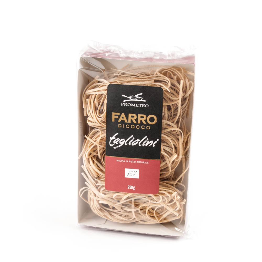 Sottili strisce racchiuse in un nido dalla consistenza ideale per ricette veloci e ricche di fantasia. Grazie alla lavorazione a sfoglia senza uova, la superficie dei Tagliolini di farro assorbe e esalta il condimento con delicatezza e leggerezza.