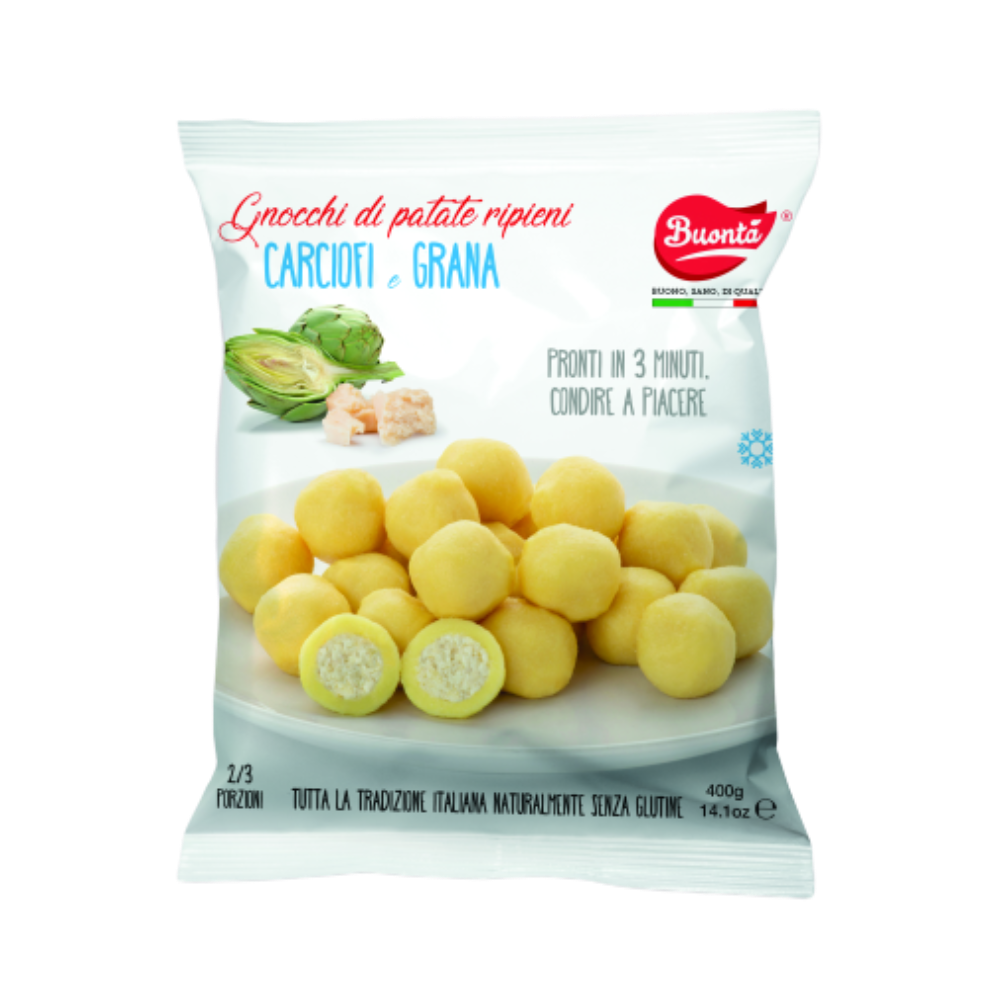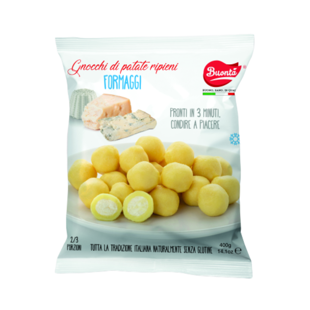 Patate, acqua, farina di legumi, olio extravergine di oliva, quinoa, radicchio rosso, noci, sedano, porri, cipolle, piselli gialli, barbabietole, fibre vegetali, lievito alimentare, sale, spezie. Contiene sedano e frutta a guscio.