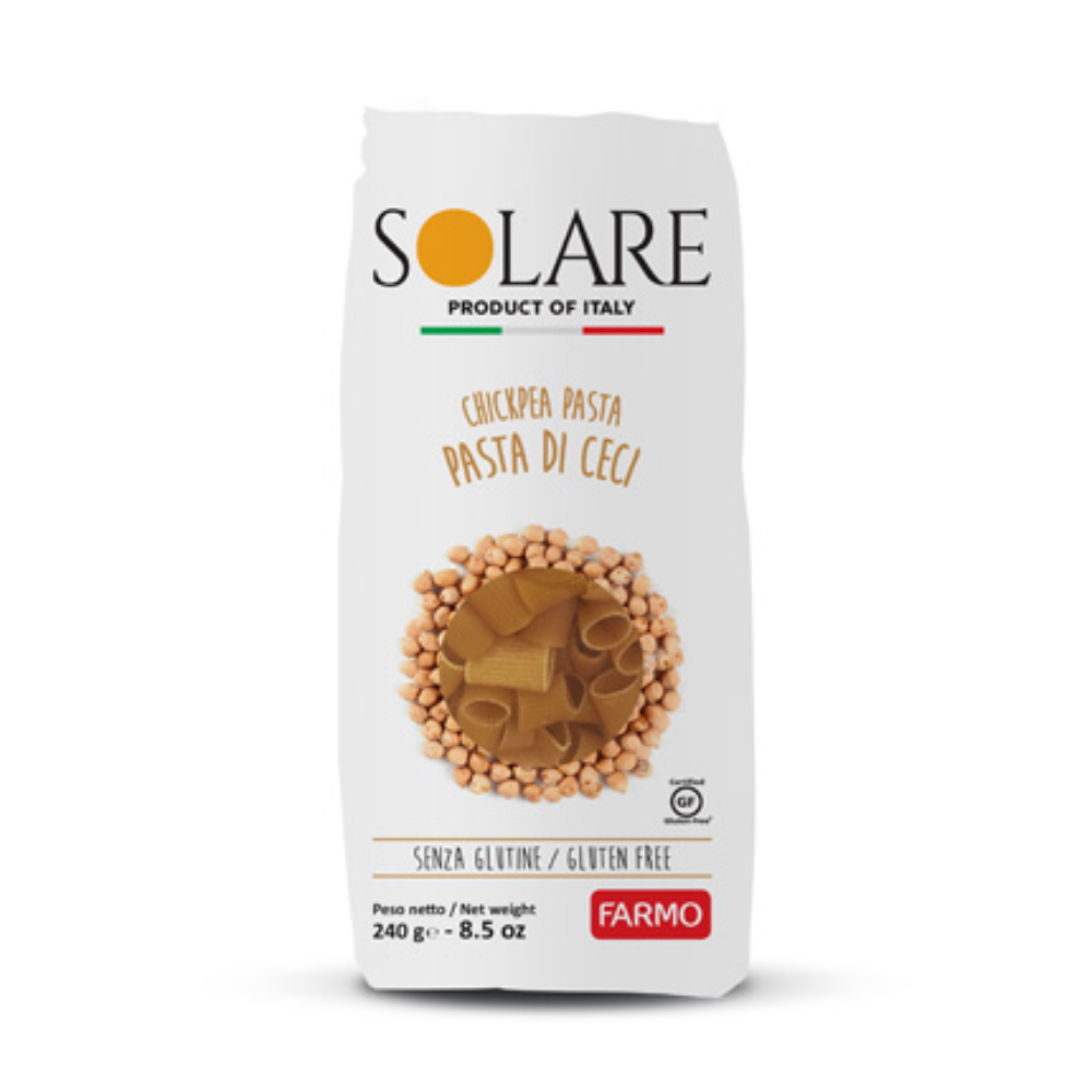 Pennette di riso integrale, verdure disidratate in proporzioni variabili (7%): basilico, aglio, sale, farina di riso, zucchero, formaggio Pecorino, olio di girasole, estratto di lievito.