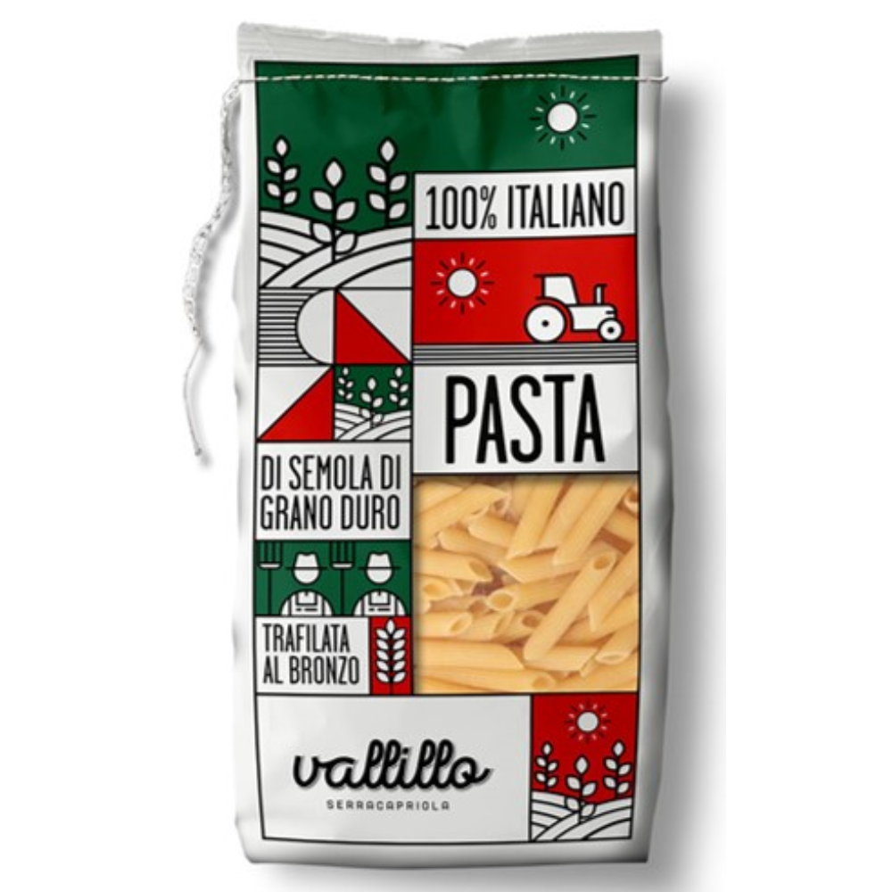 Solo grani ad alto contenuto proteico, coltivati su più di 500 ettari dell’agro di Serracapriola in Puglia, dove il clima mite tra mare e montagna ed il sole del mediterraneo consentono di rispettare la naturale maturazione della spiga. Questo permette di ottenere una semola di assoluta qualità per realizzare una pasta 100% italiana priva di tossine (glisofato, cadmio e don). La cartella sottile e la leggera rigatura sono un ottimo vettore per i condimenti importanti e un servile supporto per quelli delicati: versatile e vigorosa.