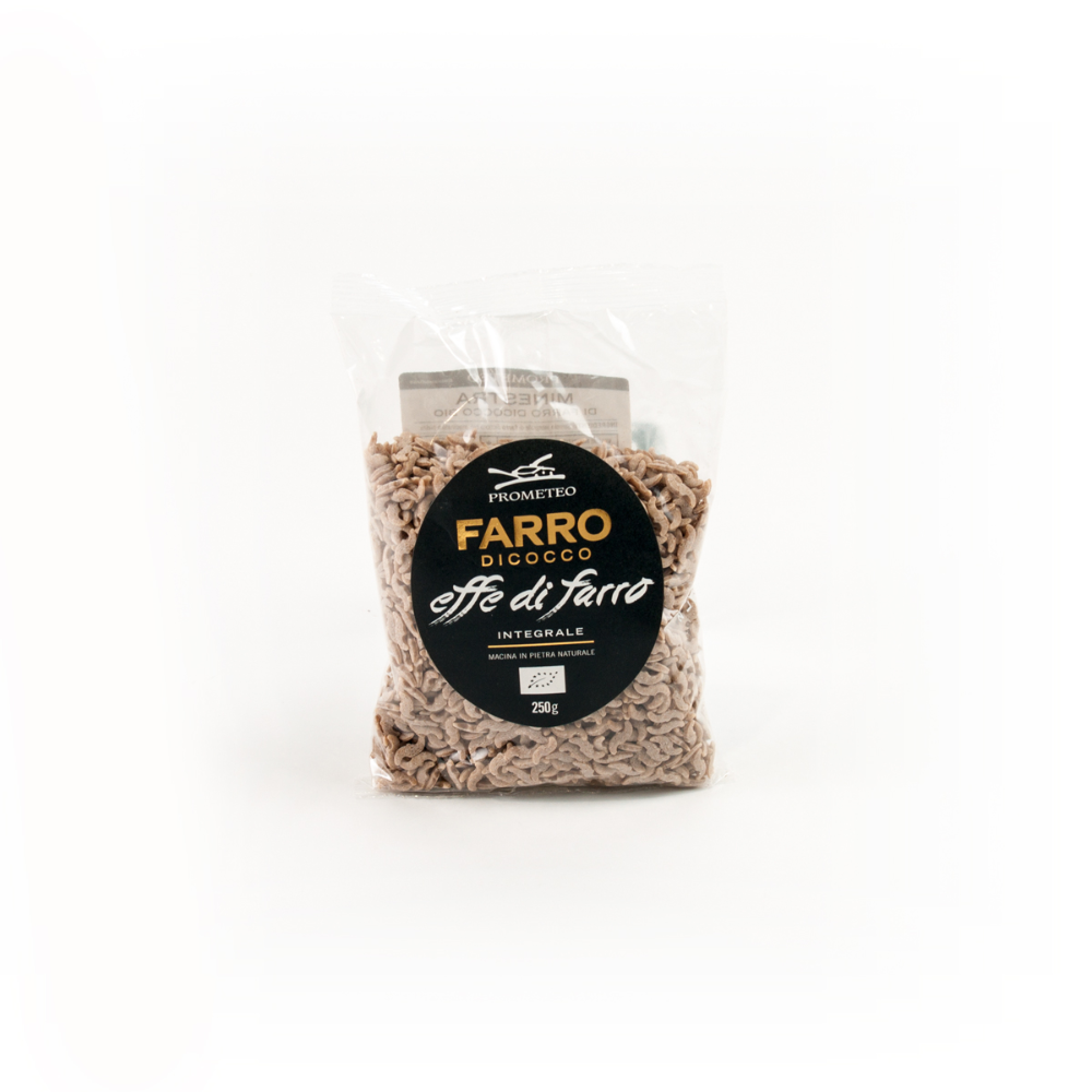 Le Effe di farro sono il formato di pastina integrale creato per rendere simpatiche e originali le ricette. Con la loro forma morbida e la porosità della superficie trafilata al bronzo arricchiscono di piacere ogni minestra, passato di verdure e brodo di pesce.